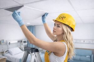 El componente esencial del sistema de Cielo Falso en Fibra Mineral Antibacterial Hidrófuga En la infraestructura hospitalaria moderna, los sistemas constructivos no se conciben como elementos aislados, sino como